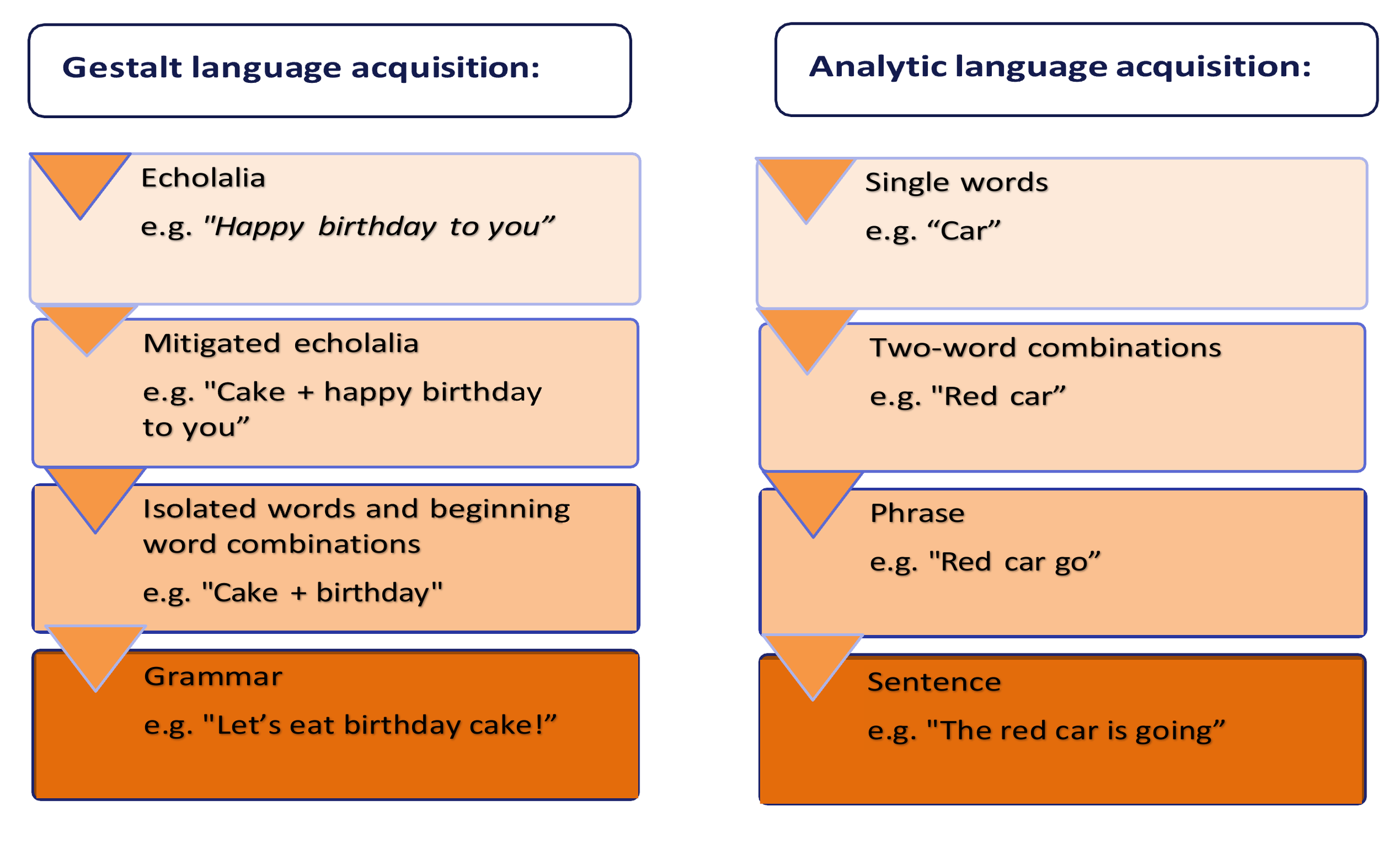 Most individuals use a combination of analytic and gestalt language acquisition. Both neurotypical and neurodivergent individuals can be gestalt language processors, but this is often seen in autistic children. For these children, echolalia is a natural step in language development.